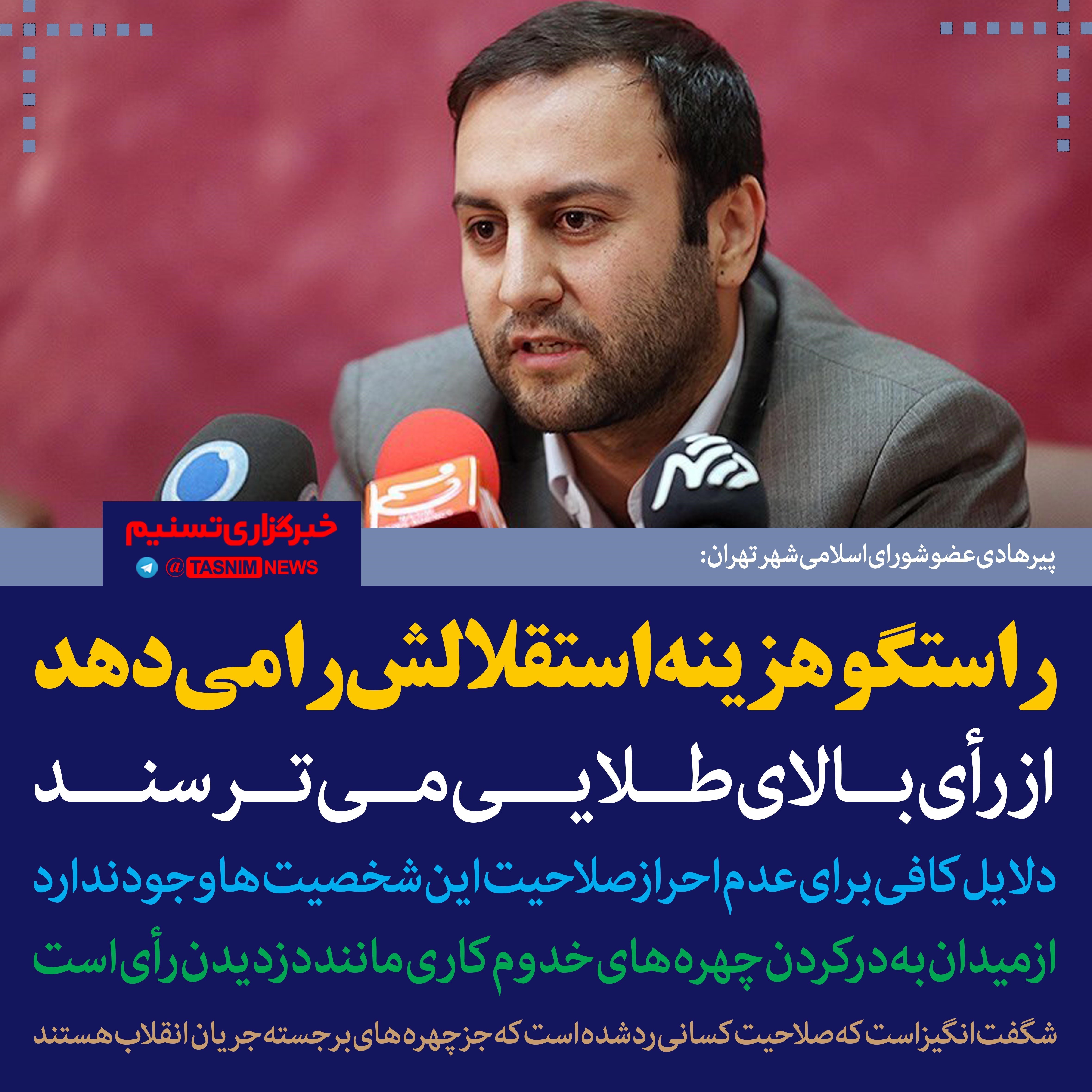 عضو هیئت رئیسه شورای اسلامی شهر تهران با انتقاد از عدم‌تأیید صلاحیت برخی چهره‌های خدوم و محبوب شورای شهر، از میدان به‌درکردن چهره‌های خدوم را کاری مانند دزدیدن رأی مردم خواند و مهندسی انتخابات با چنین روش‌هایی را غیرممکن دانست.