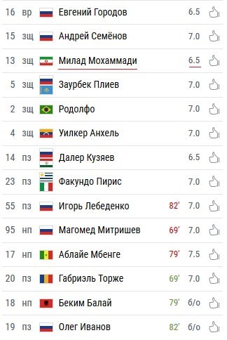 در این میان خبرگزاری ورزشی چمپیونات روسیه در ارزیابی فنی عملکرد بازیکنان 2 تیم روبینکازان و ترک گروژنی به نمایش 90 دقیقهای میلاد محمدی نمره خوب 6.5 را اختصاص داد. آبلای، زننده گل ترگ گروژنی با دریافت نمره 7.5 به عنوان بهترین بازیکن میدان شناخته شد.