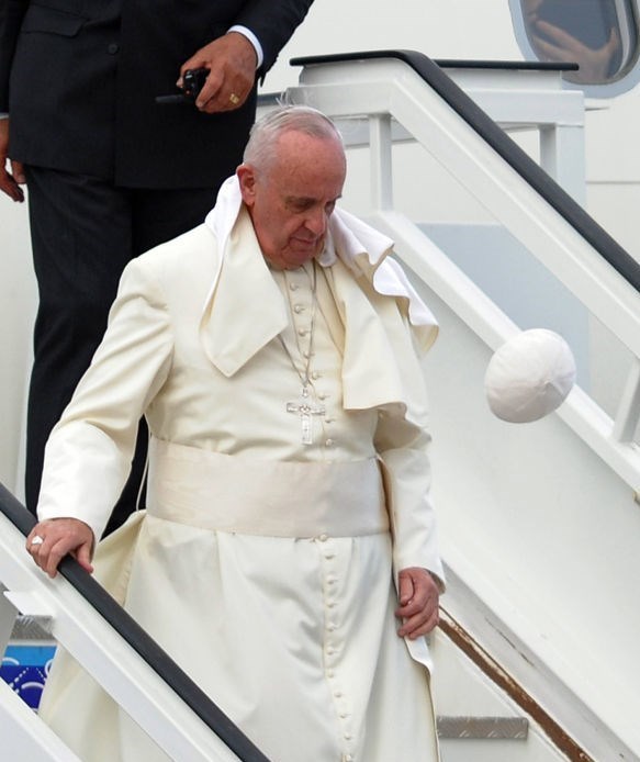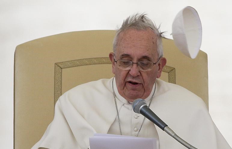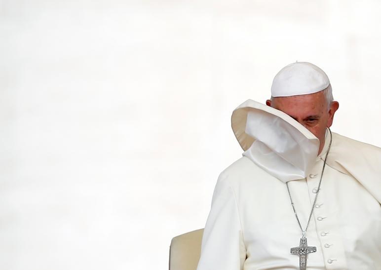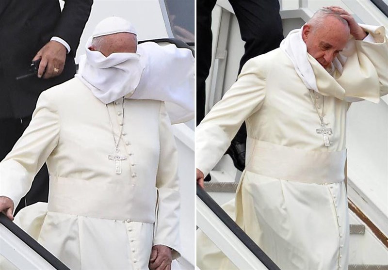 بر اساس گزارش رویترز، پاپ فرانسیس رهبر کاتولیکهای جهان روز چهارشنبه در میدان «سنت پیتر»(Saint Peter) و طی ملاقات عمومی خود در واتیکان در حالی سوژه عکاسان خبری شد که باد شدید میوزید.
