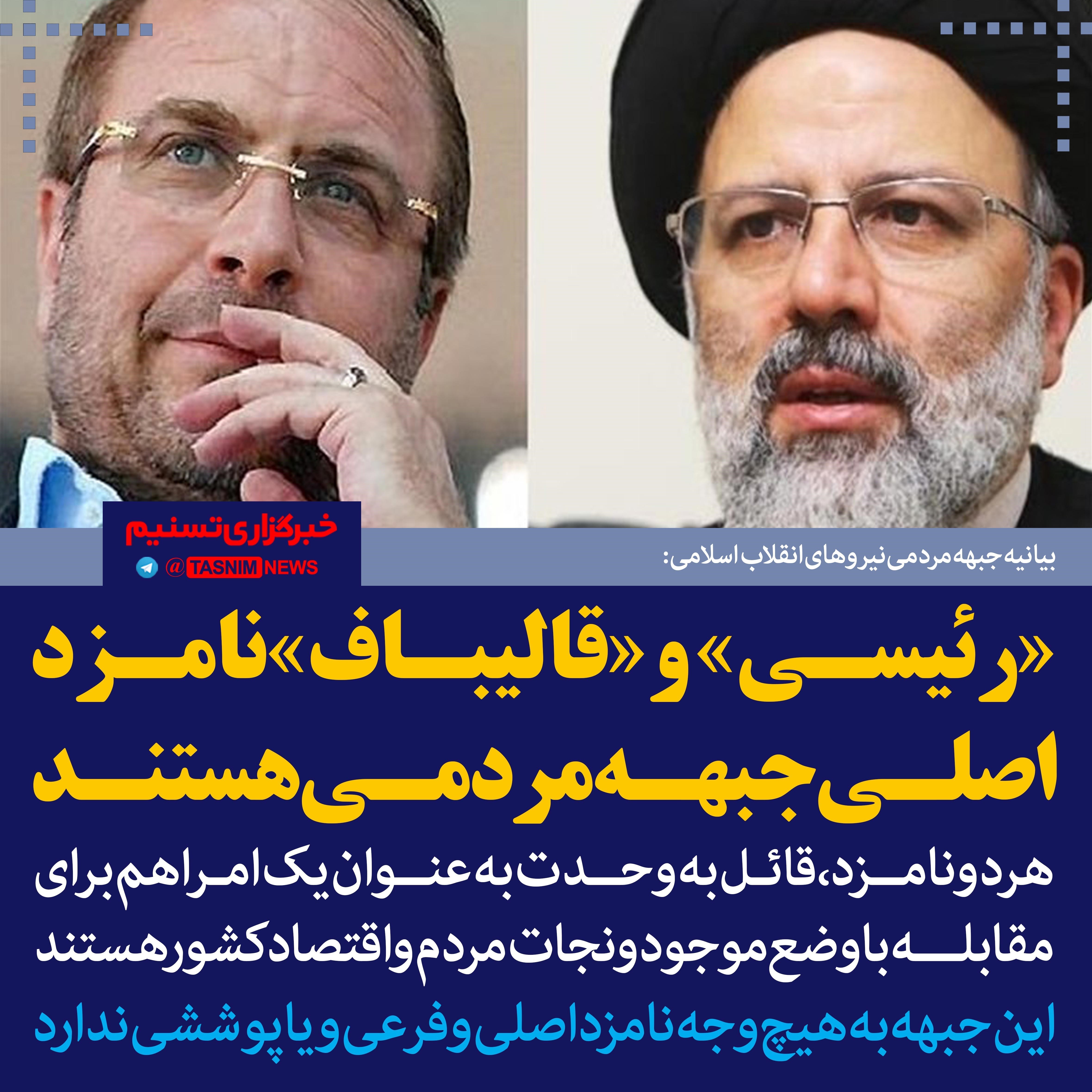 فتوتیتر/«رئیسی» و «قالیباف» نامزد اصلی جبهه مردمی هستند