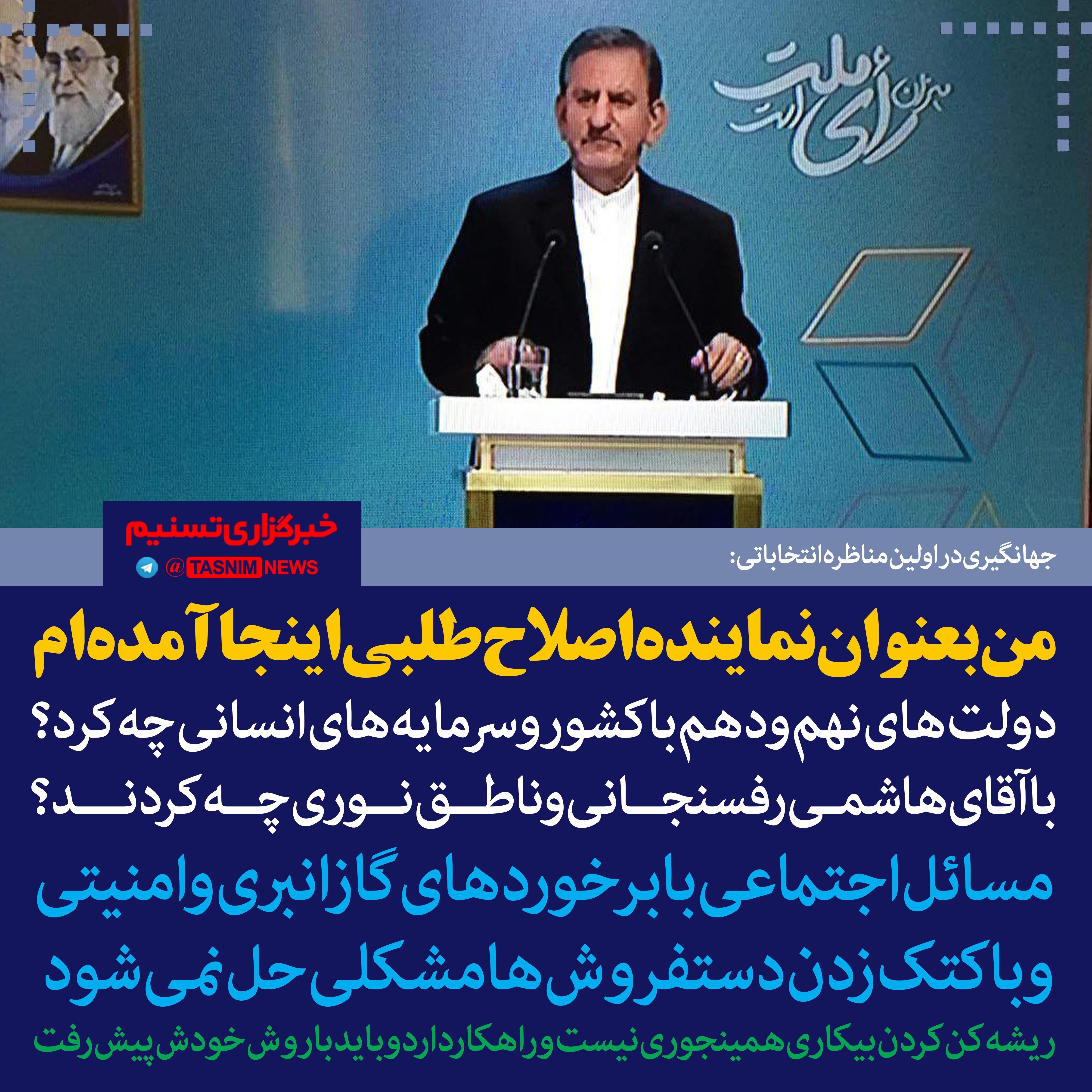 فتوتیتر/جهانگیری:من به عنوان نماینده اصلاح طلبی اینجا آمده ام