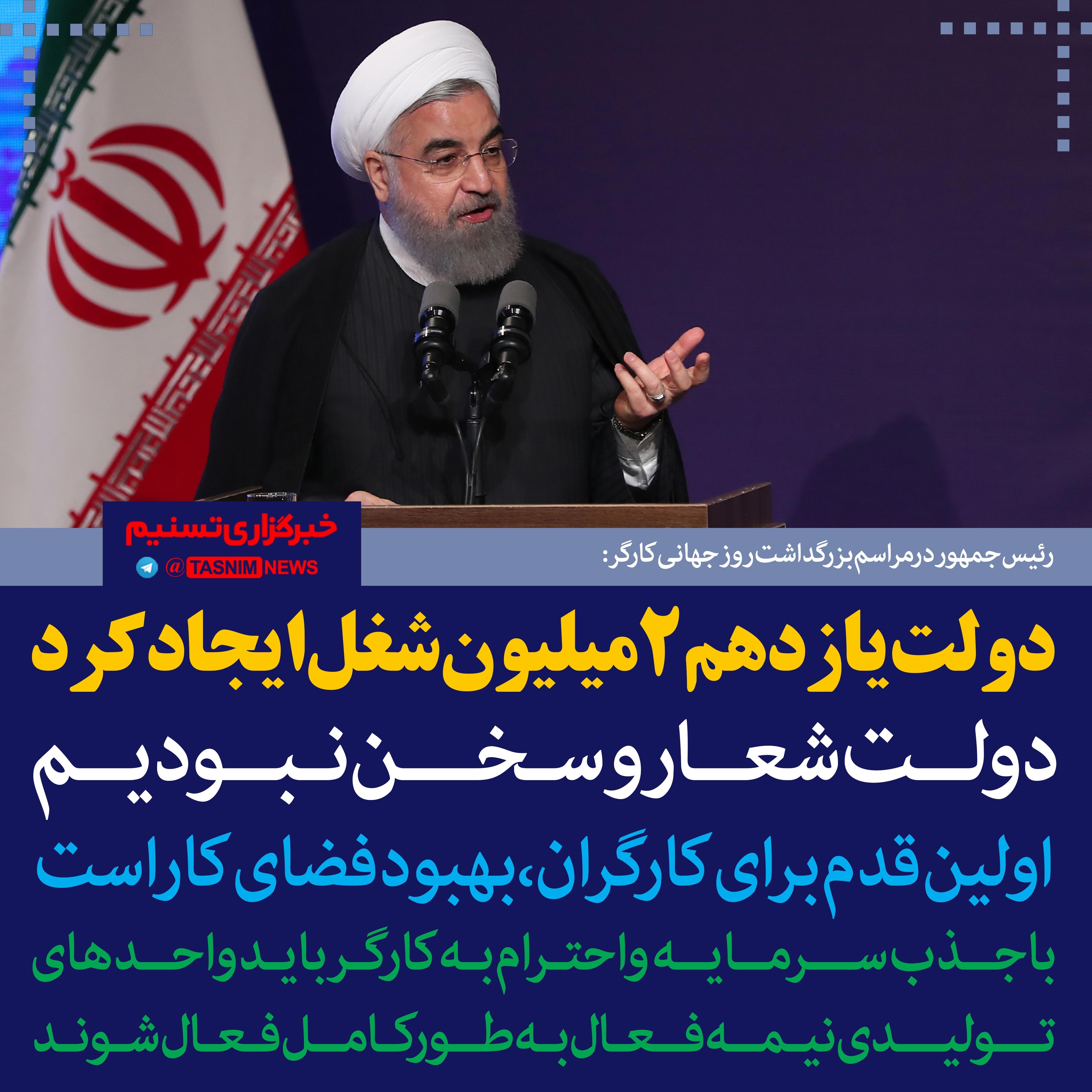 رئیس‌جمهور با بیان اینکه برای مدیریت فضای کار باید واقعیت های زندگی کارگران را شناخت گفت: ‏دولت شعار و سخن نبودیم بلکه دولت عمل و کردار بودیم.
