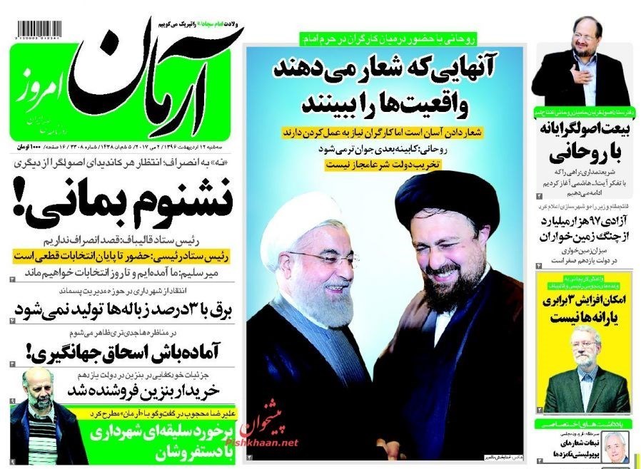 تصاویر صفحه اول روزنامه‌های سه‌شنبه 12 اردیبهشت