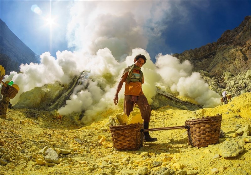 عکس روز نشنال جئوگرافیک به تصویری از یک معدنچی در حال جمع آوری گوگرد در دهانه یک کوه آتشفشانی در اندونزی اختصاص یافته که سختی این شغل را نشان می‌دهد.