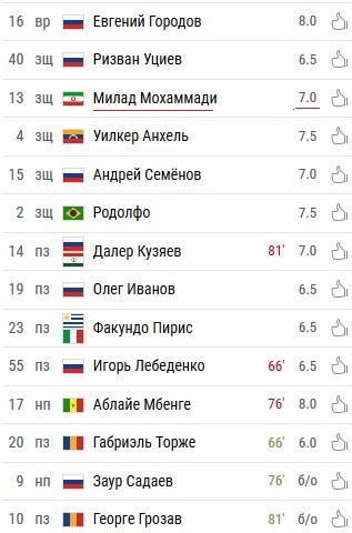 میلاد محمدی، مدافع تیم ترک گروژنی نمره فنی خوبی در بازی برابر زنیت سن‌پترزبورگ کسب کرد.
