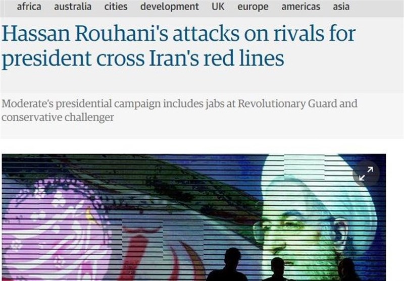 به گزارش گروه بینالملل خبرگزاری تسنیم، روزنامه گاردین در گزارشی درباره انتخابات ایران نوشته که حسن روحانی، رئیسجمهور ایران در حمله به رقیبانش از خط قرمزهای ایران عبور کرده است.