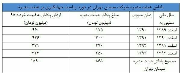 سند پاداش نجومی 865 میلیون تومانی اسحاق جهانگیری به هیئت مدیره شرکت سیمان تهران را در زیر میبینید: