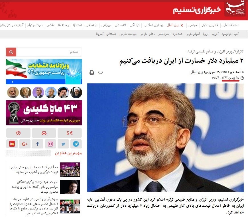 در پی عدم موفقیت مسئولان دولت در تبرئه ایران در دادگاه بین المللی و جریمه 1.9 میلیارد دلاری کشورمان در قبال فروش گاز به ترکیه از سالهای 2012 تا 2016، ایران اکنون گاز مجانی به ترکیه صادر می کند و ترکیه پول گازی که از ایران می خرد را نمی پردازد.