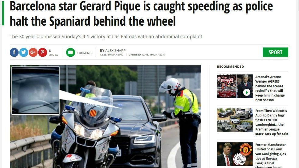 یکی از جنجالهای اخیری که رسانهها درباره پیکه به پا کردهاند، انتشار خبری توسط نشریه میرر انگلیس درباره جریمه شدن او توسط پلیس به دلیل رانندگی با سرعت بالا بوده است. در این خبر آمده است که پلیس احتمالاً پیکه را به دلیل رانندگی بدون احتیاط با 6 نمره منفی و جریمه نقدی مجازات خواهد کرد.