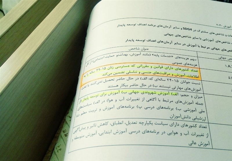 در جدول 4 شاخصهای جهانی مرتبط با آموزش در سایر آرمانهای اهداف توسعه پایدار آمده است: تعداد کشورهای دارای قوانین و مقرراتی که دسترسی زنان 15 تا 49 ساله را به اطلاعات، آموزش و مراقبتهای جنسی و تناسلی تضمین میکند.