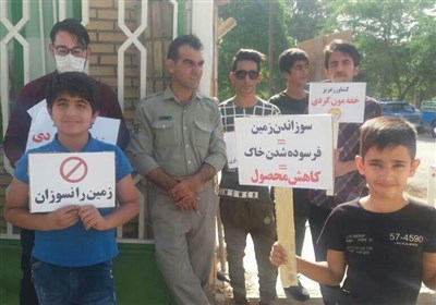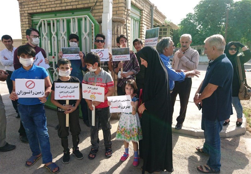 تعدادی از شهروندان شوشی با گرفتن پلاکاردها با نوشتههای محیط زیستی به نشانه اعتراض نسبت به آتش زدن مزارع در مقابل اداره جهاد کشاورزی شهرستان شوش تجمع کردند.