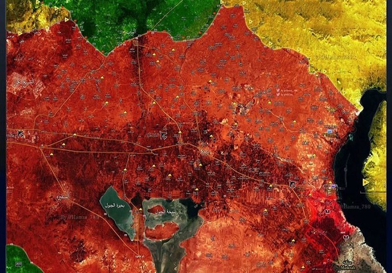نیروهای  ارتش سوریه شهرک‌های «النعیمیة، الحمرا، الفیصلیة، الرمضانیة و جب الحمام» در جنوب غربی شهر «مسکنة» و  نیز روستاهای «جباب العیصلان، الکالطة، الصوانیة و العیصلان» و پل فیصل و پل کواس و شهرک‌های «کواس، الحمرا، المزة، العجوزیة و الوسیطة» در جنوب شرقی دریاچه الحمرات در حومه شرقی حلب را از اشغال تروریست‌های تکفیری آزاد کرده‌اند و به آزادسازی کامل این محور نزدیک شده و به محاصره شهر مسکنه مهمترین دژ داعش در حومه شرقی حلب ادامه می‌دهند.