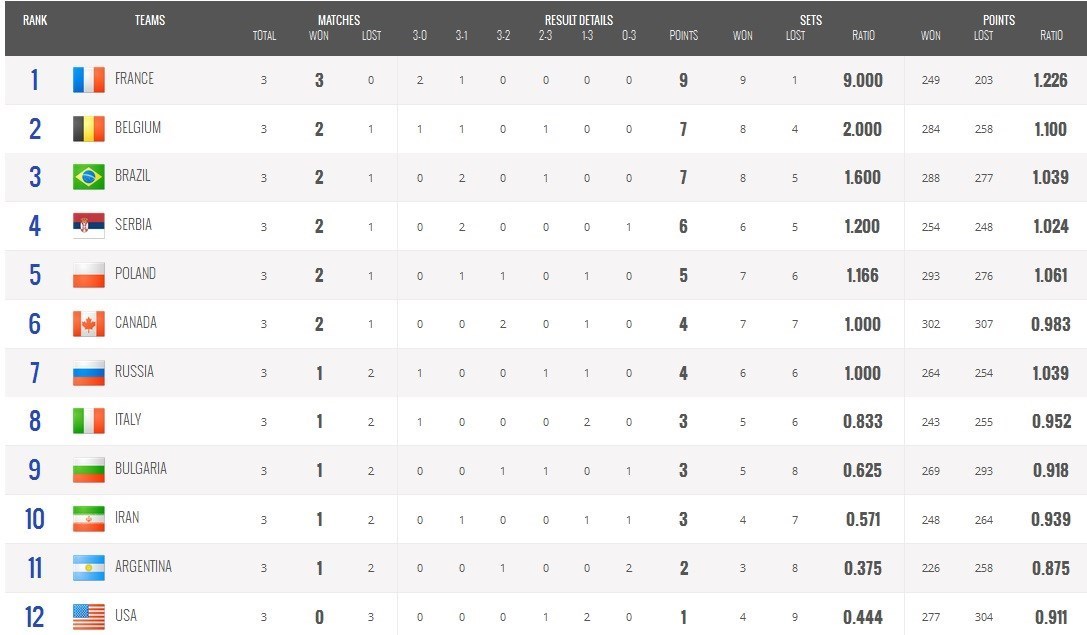 مرحله نهایی لیگ جهانی والیبال نیز از 13 تیرماه به‌میزبانی برزیل آغاز می‌شود. رده بندی 12 تیم سطح یک لیگ جهانی در آغاز هفته دوم به شکل زیر است: