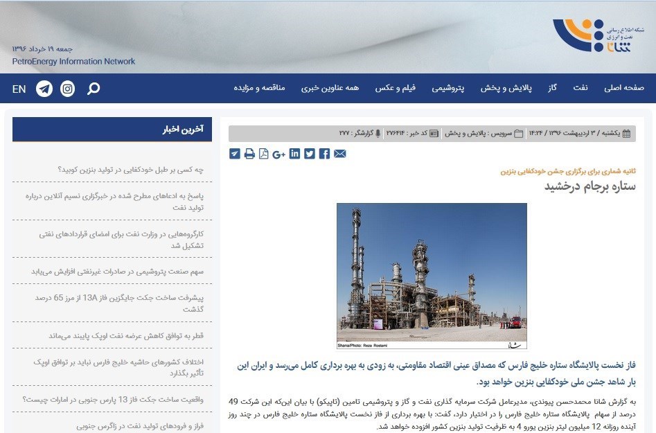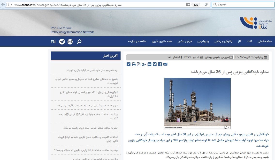سایت رسمی اطلاع رسانی وزارت نفت آبان ماه سال 95 با انتشار گزارشی عنوان کرد: "دولت یازدهم پرچمدار خودکفایی بنزین خواهد شد."