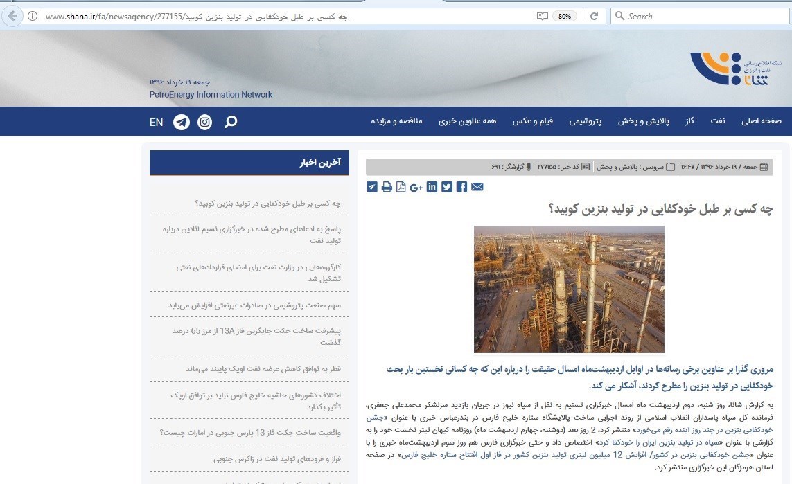 اخبار اینچنینی که تماما در روزهای پیش از انتخابات از سوی وزارت نفت منتشر می شد، خبر از خودکفایی تولید بنزین می داد، سوال اینجاست زمانی که رسانه رسمی وزارت نفت چنین اخباری را منتشر می کرد چرا وزیر نفت اقدام به تکذیب آن نکرد تا اینکه چند هفته بعد از برگزاری انتخابات بگوید : هیچ وقت نگفتم در بنزین خودکفا می شویم!