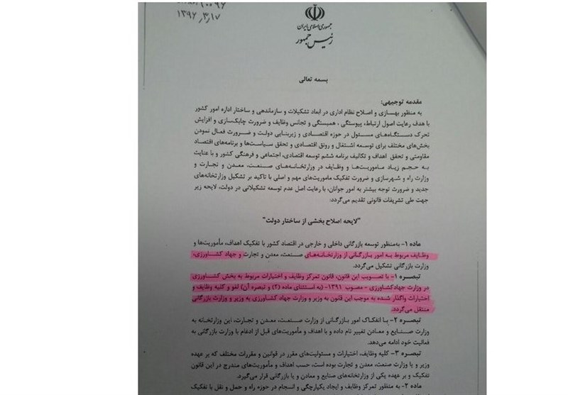 احیای "وزارت بازرگانی" با قید 2فوریت/تغییرات جدید در ماموریت وزارت جهاد کشاورزی +مستندات