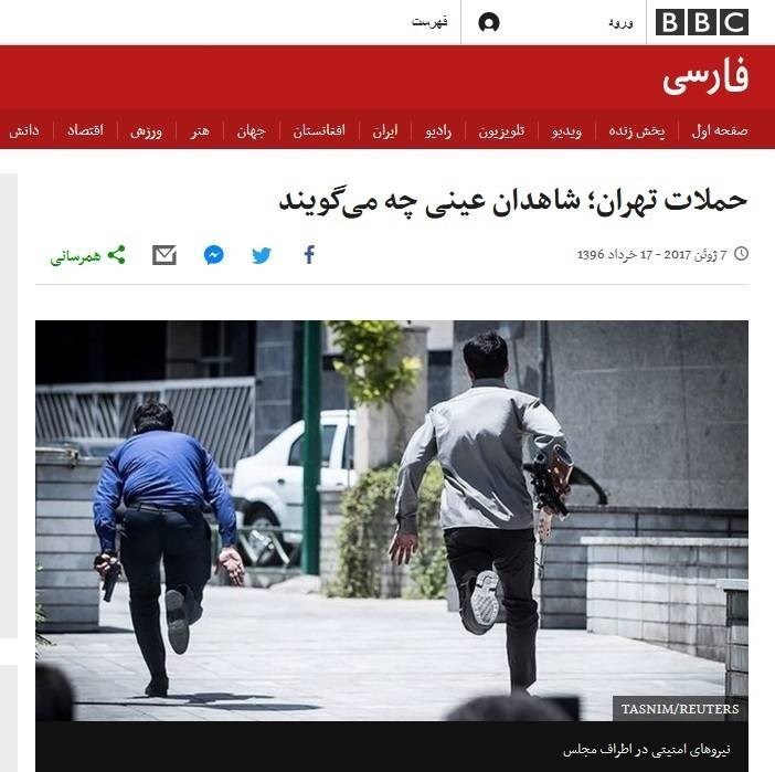 به گزارش گروه رسانه های خبرگزاری تسنیم، حادثه تروریستی چهارشنبه هفدهم خرداد در حرم حضرت امام(ره) و مجلس شورای اسلامی، خوشبختانه با واکنش سریع نیروهای نظامی و امنیتی جمهوری اسلامی در بعد از ظهر همان روز به پایان رسید. هرچند این حادثه موجب تأثر و ناراحتی مردم ایران شد، اما شهر دوباره در کمال امنیت و آرامش که ماحصل اطمینان به اقتدار و قدرت جمهوری اسلامی است به کار خود ادامه داد. در این میان اما ماشین تبلیغاتی رسانههای فارسیزبان خارجنشین مانند همیشه به میدان آمدند تا از فرصت بوجود آمده نهایت استفاده را برای ضربه به ایران بکنند. در رأس همه این رسانهها، بیبیسی فارسی بود که خط خبری خودش را از ابتدا تا کنون برای بهرهبرداری از این ماجرا به پیش برده است.