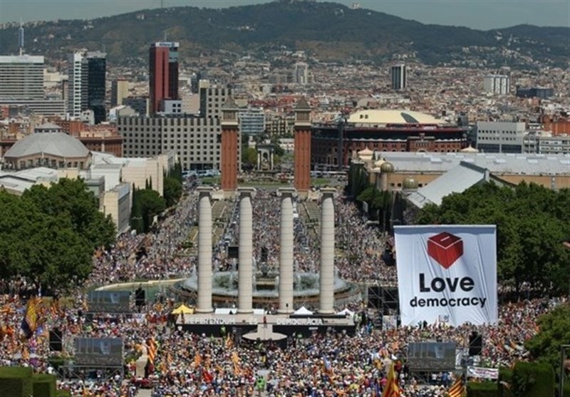 تظاهرات هزاران نفر در بارسلونا در حمایت از همه پرسی استقلال کاتالونیا