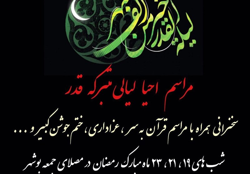 وی با اشاره اینکه مردم متدین استان بوشهر توجه خاصی به شب‌های قدر دارند تصریح کرد: با برنامه‌ریزی انجام شده مراسم  احیاء لیالی قدر و شهادت امام علی (ع) در بیش از 2 هزار نقطه در مصلاها، امام‌زاده‌ها، مساجد و کانون‌های فرهنگی مساجد استان بوشهر برگزار می‌شود.