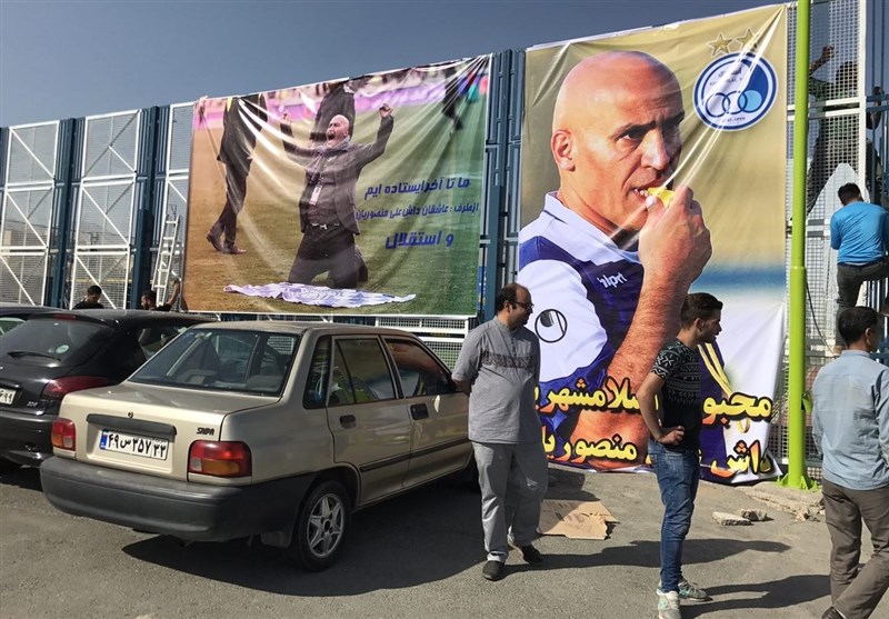 * شماری از هواداران استقلال نبرهای بزرگی از علیرضا منصوریان را در کمپ نصب و حمایت خود را از سرمربی استقلال اعلام کردند.