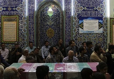 خانواده شهید محمدرضا علیخانی، خانواده شهید محمودمراد اسکندری و خانواده شهید مصطفی رشیدپور از شهدای مدافع حرم خوزستان در مراسم وداع با این شهید در مسجد حضرت صاحب‌الزمان(عج) اهواز حضور یافتند.