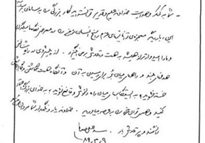 در سالهای آخر عمر پربارش بود که نوشت: پیش به سوی گسترش دین الهی در تمامی کره زمین و ایجاد زمینه اطاعت مطلق او در سرتاسر زمین و ایجاد زمینه ظهور منجی وبسط و گسترش فرهنگ تشیع علوی در سرتا سر جهان...