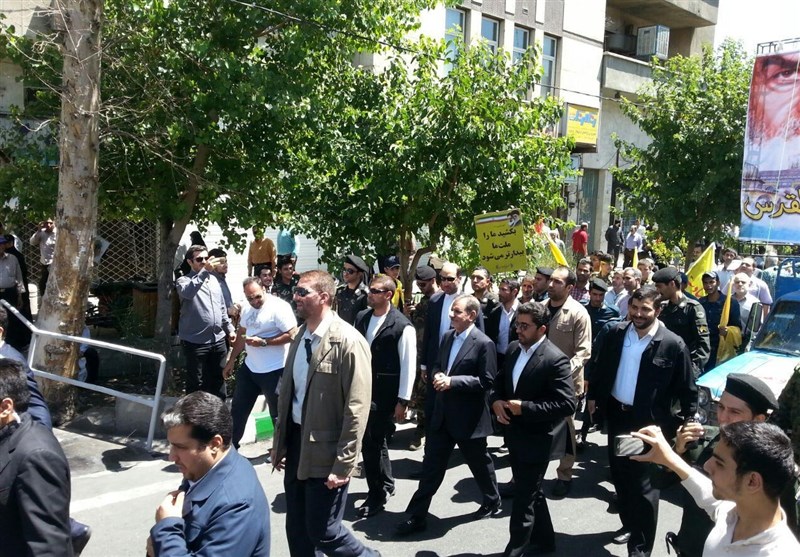به گزارش خبرنگار سیاسی خبرگزاری تسنیم، اسحاق جهانگیری معاون اول رئیس جمهور به جمع راهپیمایان روز قدس در تهران پیوست.