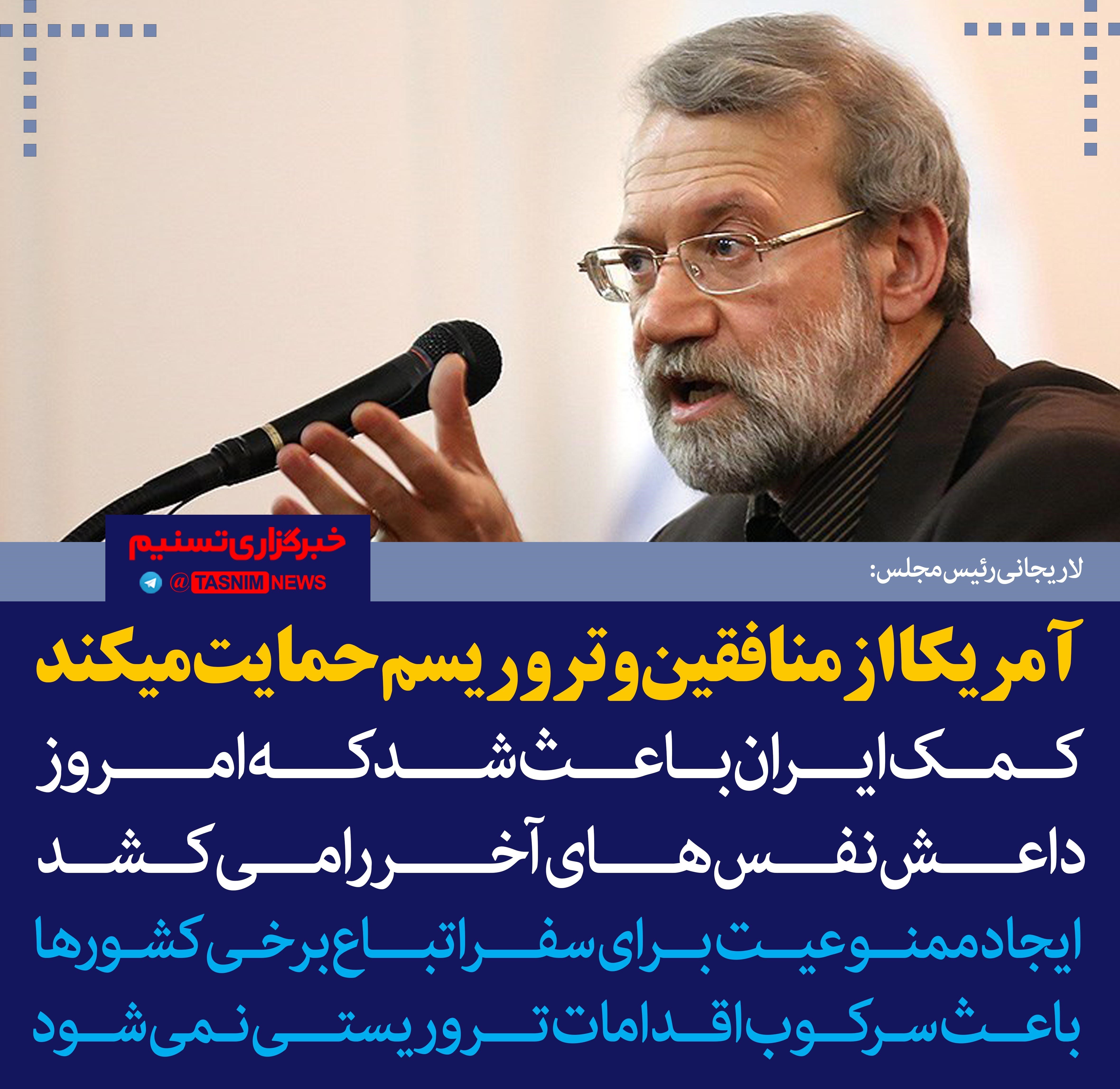 فتوتیتر/لاریجانی:آمریکا از منافقین و تروریسم حمایت می‌کند