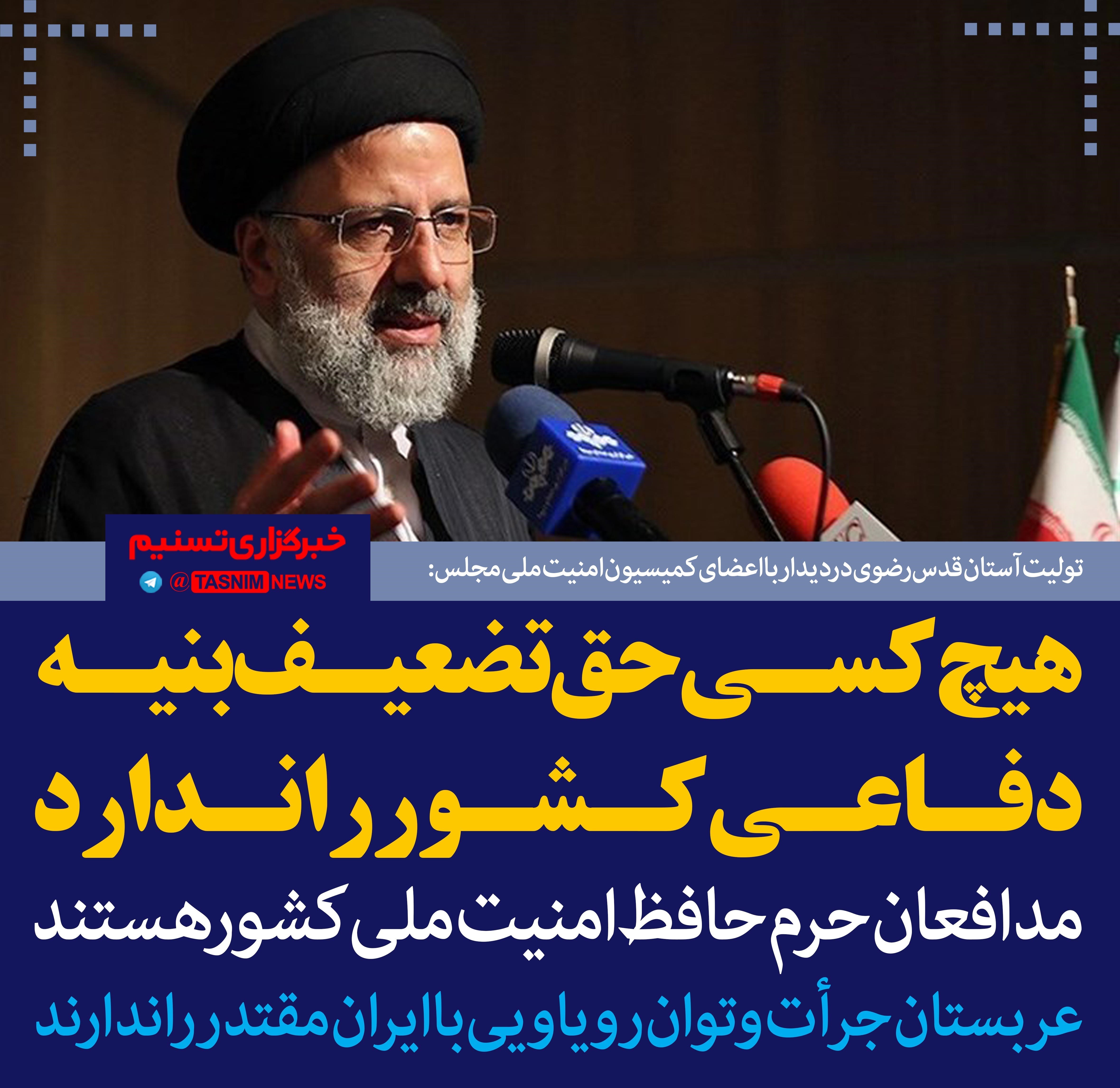 فتوتیتر/حجت الاسلام رئیسی: هیچ کسی حق تضعیف بنیه دفاعی کشور را ندارد