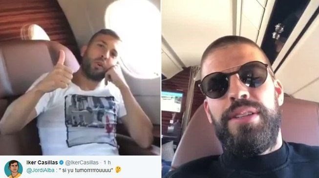 پیکه به واسطه دوران حضورش در منچستریونایتد به انگلیسی مسلط است و بوسکتس هم لهجه نسبتاً خوبی دارد اما آلبا که تمام دوران بازیگریاش را در اسپانیا سپری کرده است، با لهجهای انگلیسی صحبت میکند که باعث شده از سوی ایکر کاسیاس، همتیمی سابقش در تیم ملی اسپانیا مورد تمسخر قرار بگیرد.