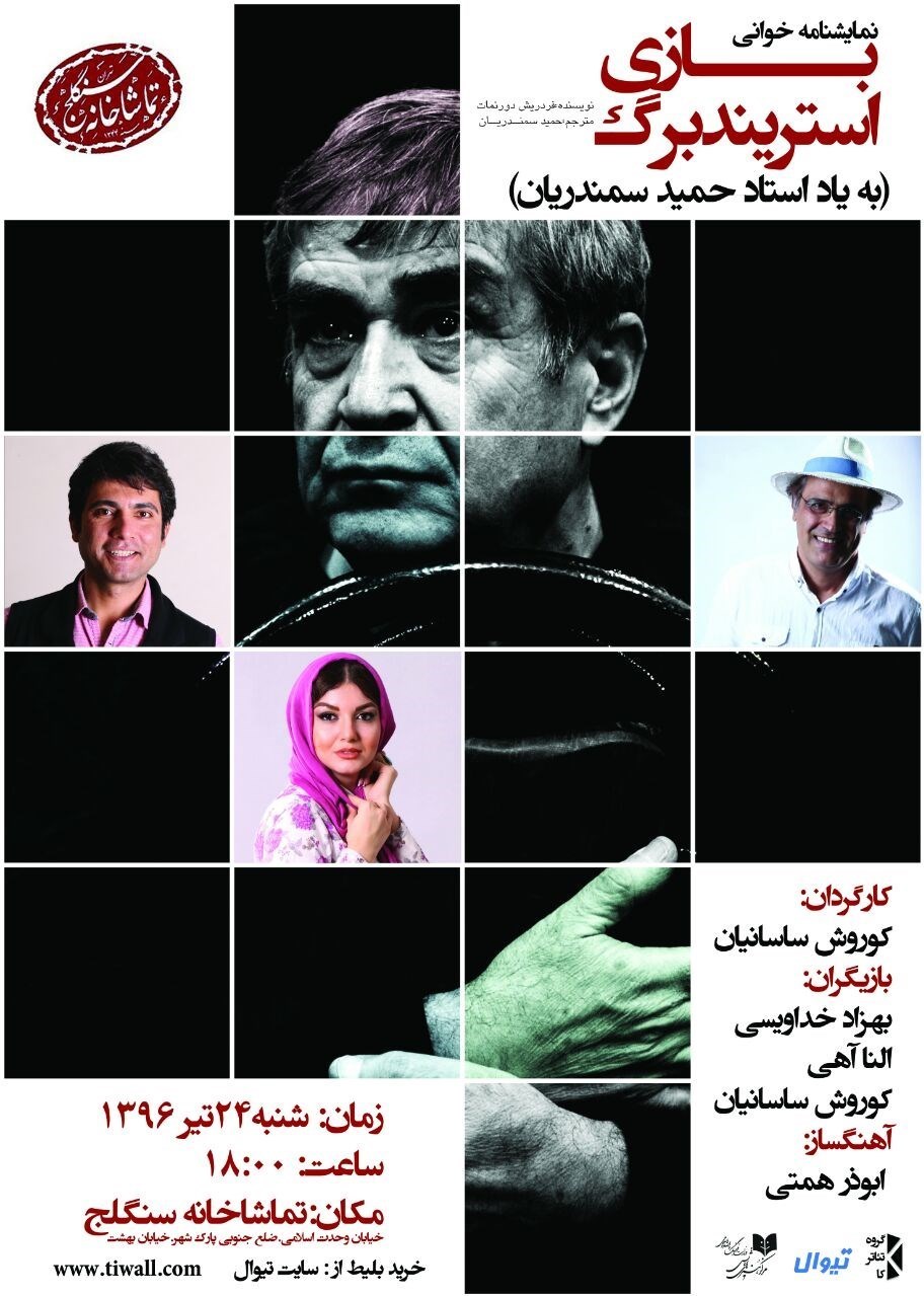 نمایشنامه «بازی استریندبرگ» به کارگردانی «کوروش ساسانیان» به مناسبت سالروز درگذشت «حمید سمندریان» روز شنبه 24 تیرماه و در ساعت 18 در تماشاخانه سنگلج نمایشنامهخوانی میشود.