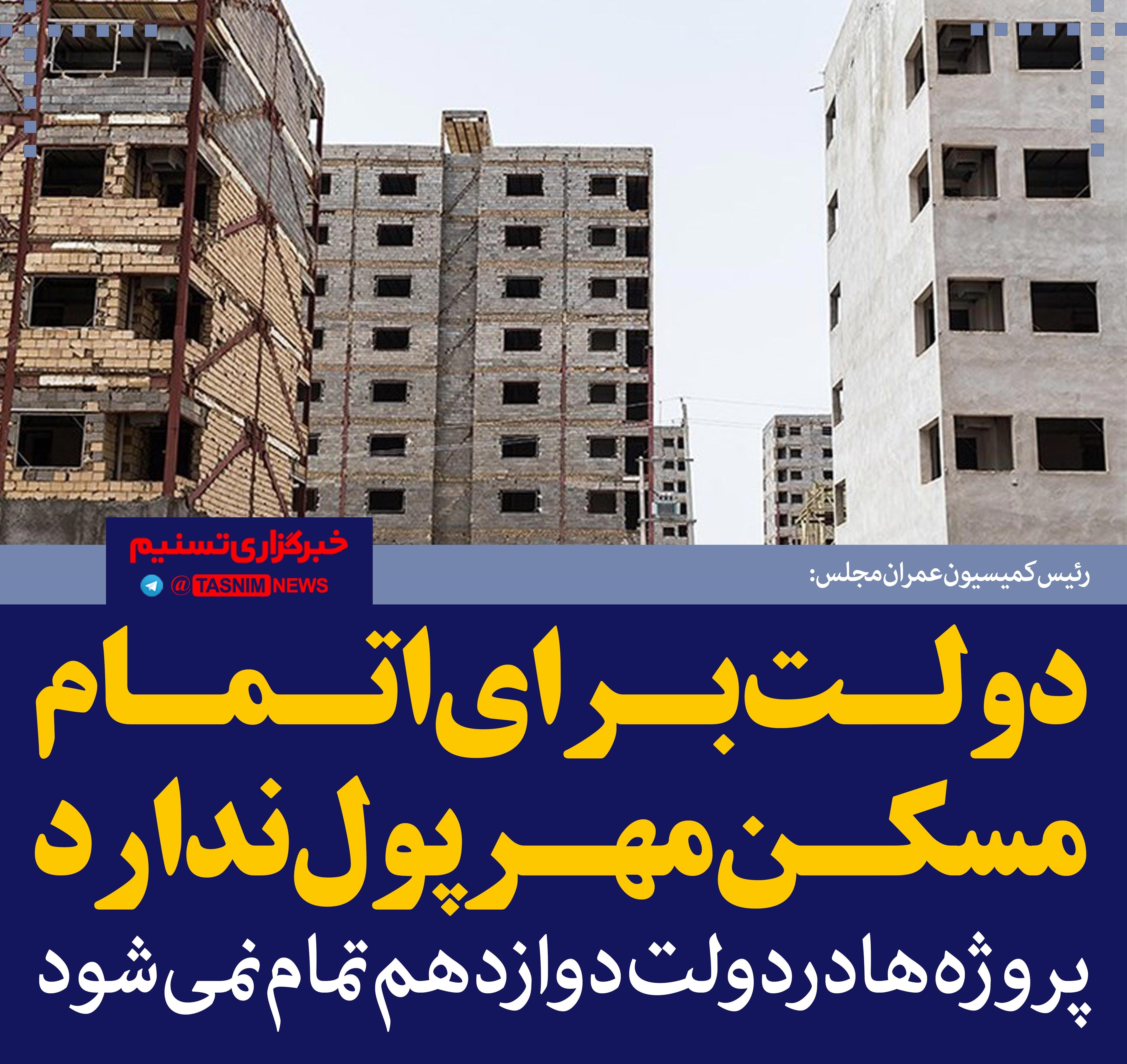 فتوتیتر/رئیس کمسیون عمران مجلس:دولت برای اتمام مسکن مهر پول ندارد