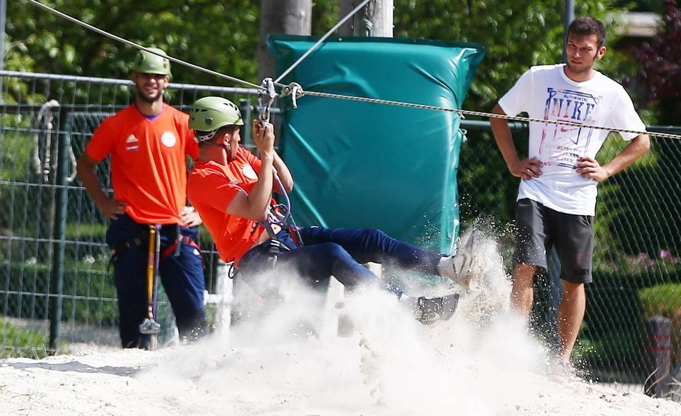 به گزارش خبرگزاری تسنیم، بازیکنان تیم فوتبال المپیاکوس که دومین اردوی آمادهسازی خارجی خود را در بلژیک برپا کردهاند پس از پایان تمرین دیروز (پنجشنبه) راهی پارک ماجراجوییهای سخت ورزشی در شهر خنک شدند تا توانمندیهای خود را در دیگر ورزشها نیز به نمایش بگذارند.