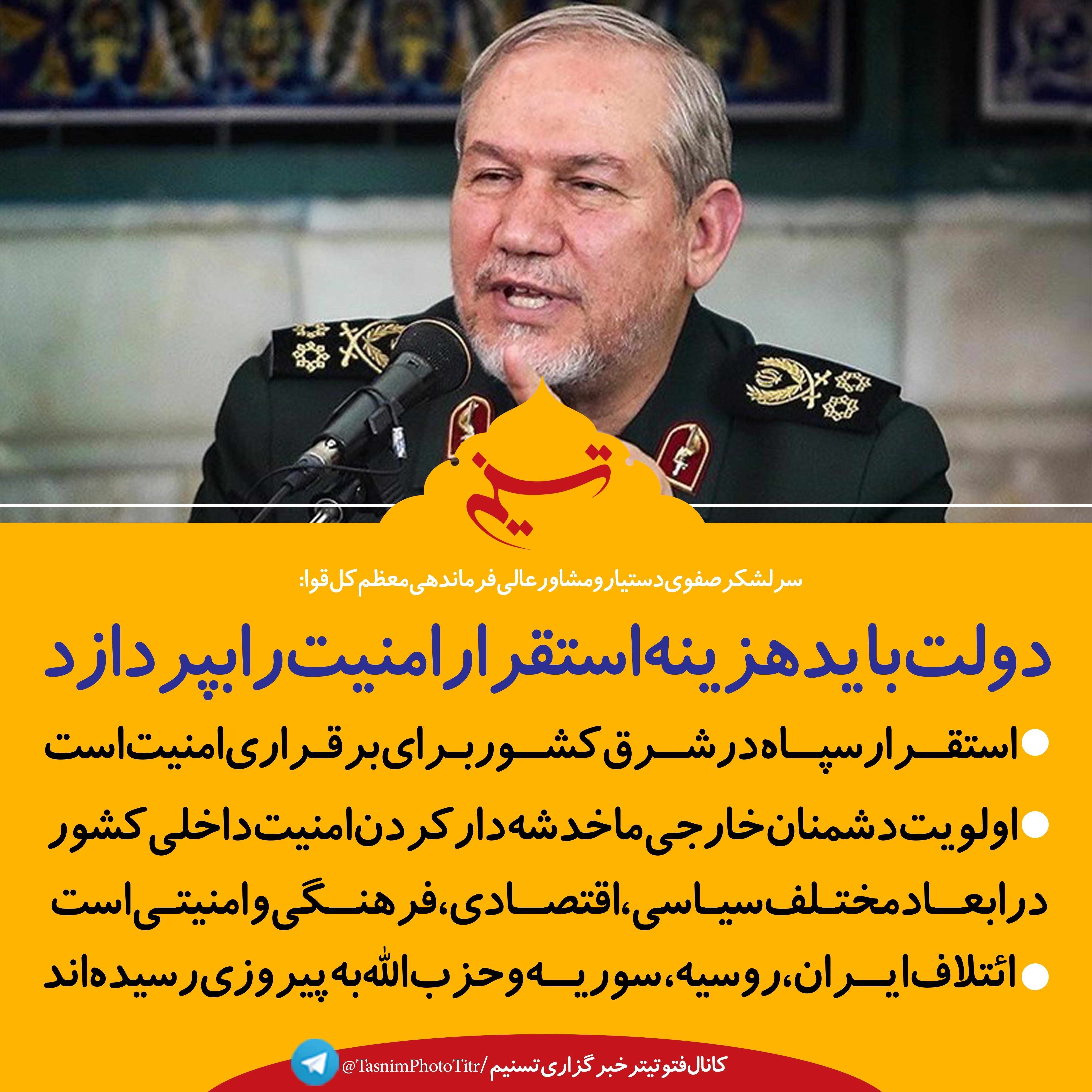 فتوتیتر/سرلشکر صفوی:دولت باید هزینه استقرار امنیت را بپردازد