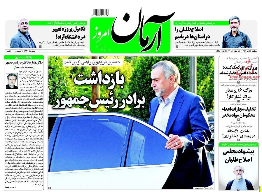 تصاویر صفحه اول روزنامه‌های دوشنبه 26 تیر