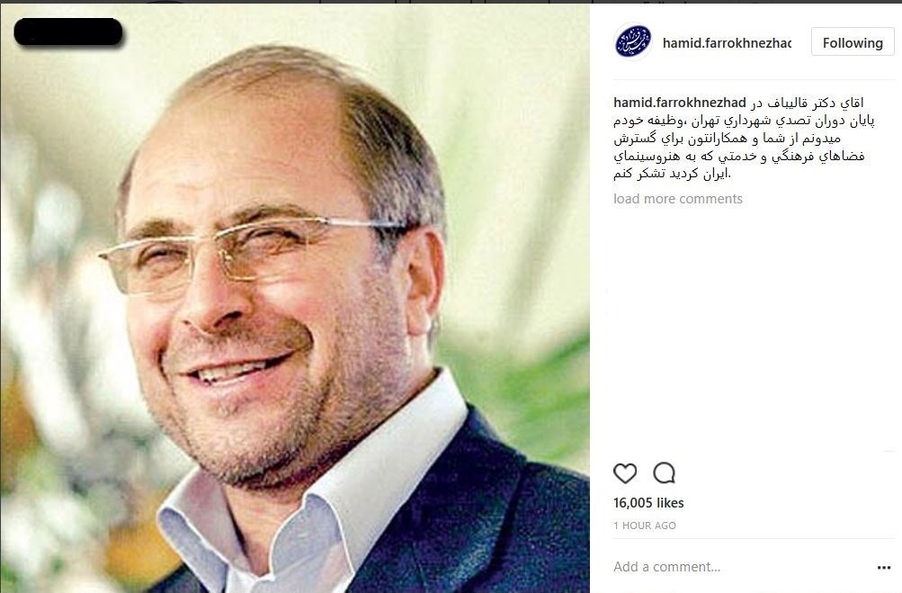 به گزارش خبرنگار فرهنگی باشگاه خبرنگاران پویا؛ حمید فرخ نژاد بازیگر و تهیهکننده سینمای ایران در تازهترین پیام اینستاگرامی از زحمات محمدباقر قالیباف شهردار کلان شهر تهران تقدیر کرد و نوشت:«آقای دکتر قالیباف در پایان دوران تصدی شهرداری تهران،وظیفه خودم میدونم از شما و همکارانتون برای گسترش فضاهای فرهنگی و خدمتی که به هنروسینمای ایران کردید تشکر کنم.»