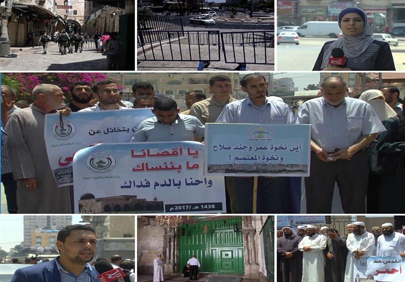 «دعاء انعیم»، خبرنگار خبرگزاری تسنیم، نوار غزه: برای اولین بار بعد ازسال 1969 نظامیان اشغالگر تصمیم گرفتند، در اقداماتی کم سابقه برضد مسجدالاقصی ورود به این مکان را به صورت کامل ممنوع اعلام کنند، حتی آنها اقامه و برپایی نماز در داخل مسجدالاقصی را ممنوع و وانمود کردند این اقدام واکنشی به عملیات شهادتطلبانه اخیر فلسطینیان است. این تصمیم باعث برانگیخته شدن واکنشهای خشمگینانه فلسطینیان شده است، به گونهای که وزارت اوقاف و امور دینی تجمع اعتراضآمیزی را به منظور اعلام همبستگی وحمایت از مسجد الاقصی برپا کرد و تجمعکنندگان اعتراض خود را نسبت به بسته شدن دربهای مسجدالاقصی نشان دادند.