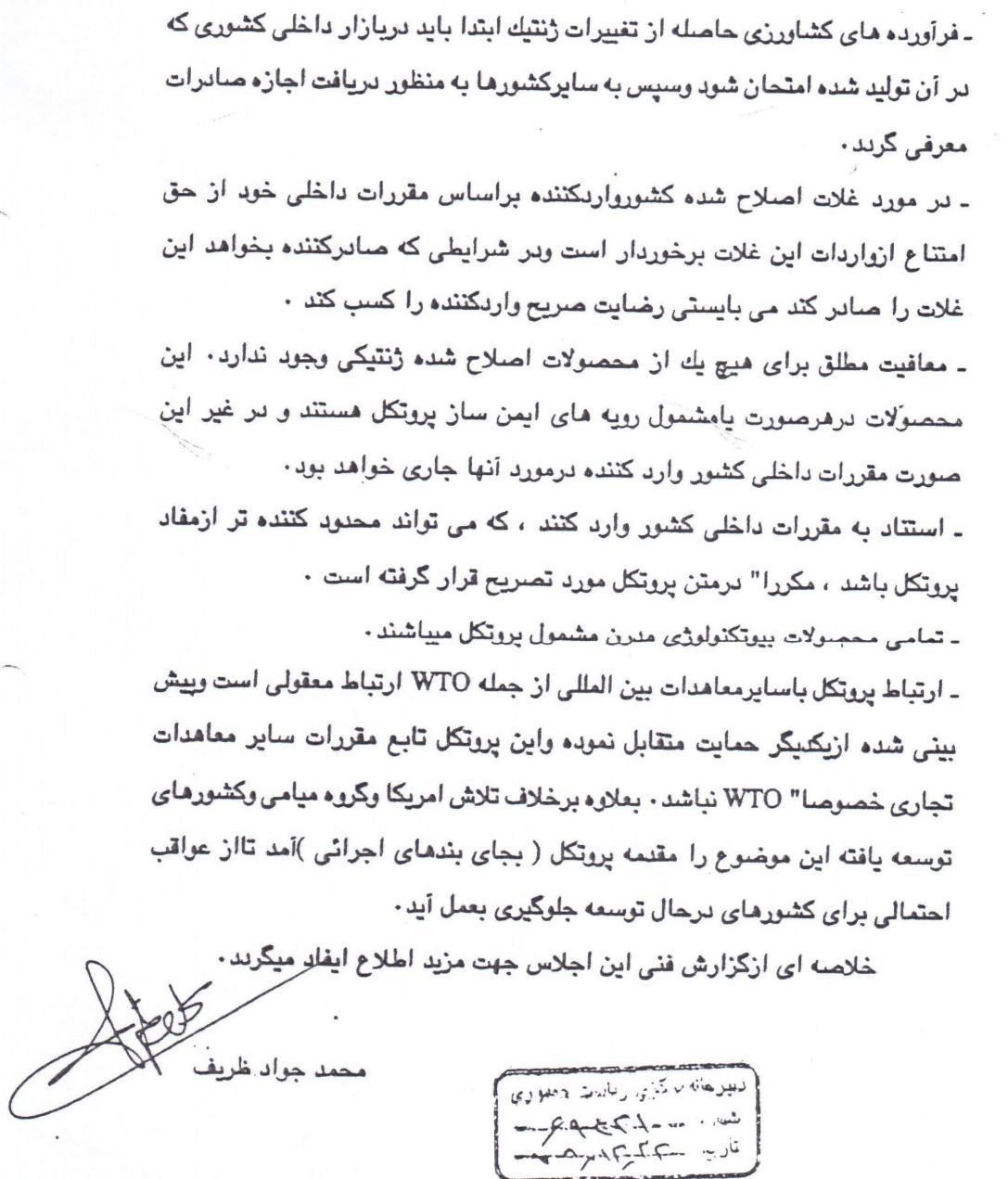 ــ تمامی محصولات بیوتکنولوژی مدرن مشمول پروتکل میباشند.