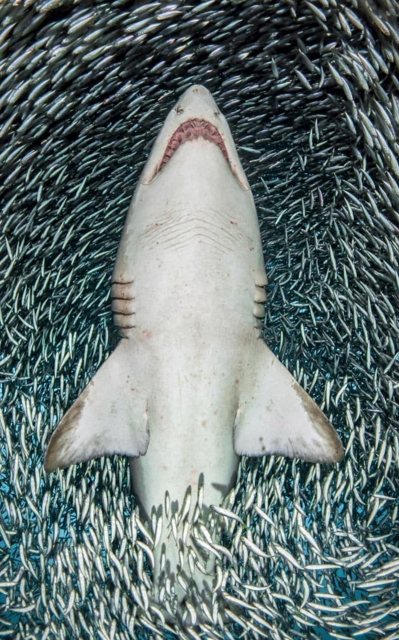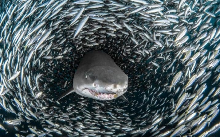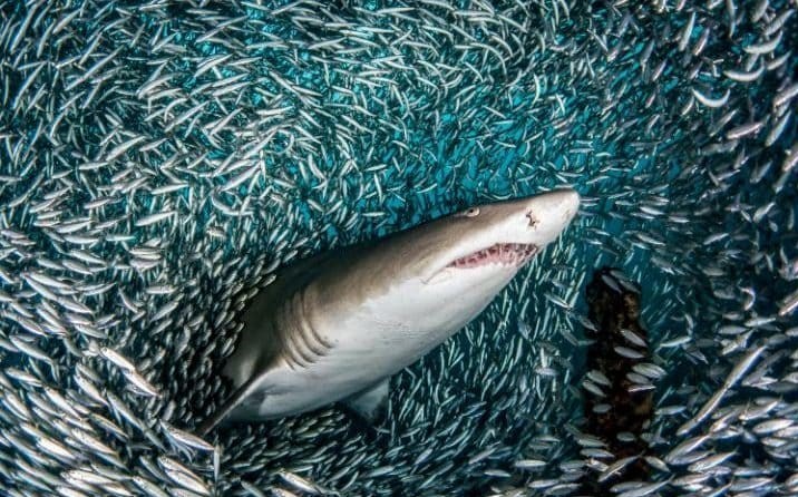 به گزارش خبرنگار اجتماعی خبرگزاری تسنیم، این تصاویر مسحورانه را یک گروه عکاس زیر دریا از کوسه‌هایی که توسط هزاران ماهی در ساحل کارولینای جنوبی در آمریکا محاصره شده‌اند ثبت کرده‌اند.