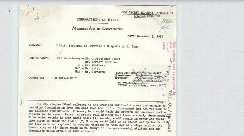 علیرغم آنکه نقش انگلیس در براندازی دولت مصدق موضوعی نیست که تازه باشد، این اولین بار است که اسناد رسمی در تأیید این موضوع از حالت محرمانه خارج میشوند.