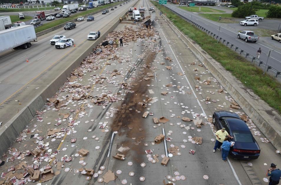 بزرگراهی در ایالت آرکانزاس به‌دلیل واژگون‌شدن یک کامیون حمل پیتزا به‌مدت 4 ساعت مسدود شد.