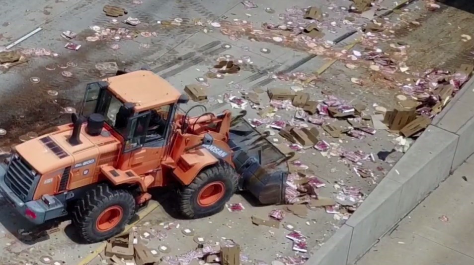 بر اساس گزارش تلگراف، این حادثه روز گذشته رخ داد و کارکنان اداره راه و پلیس راهنمایی و رانندگی با استفاده از یک دستگاه لودر به جمع‌آوری پیتزاهای یخ‌زده اقدام کردند.