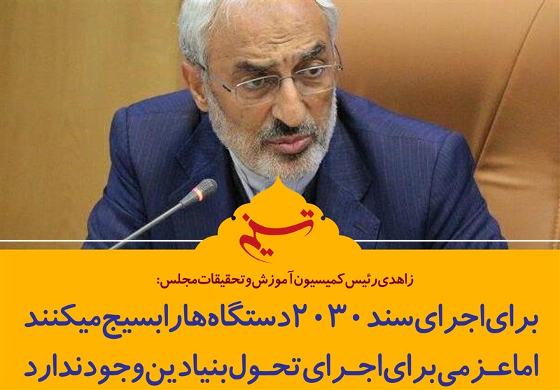 رئیس کمیسیون آموزش و تحقیقات مجلس گفت:‌چگونه کشور این امکان را دارد که تمام دستگاه‌ها را با متولی بودن آموزش‌وپرورش برای اجرای سند 2030 بسیج کند اما عزم لازم برای اجرای سند تحول بنیادین مشاهده نمی‌شود.