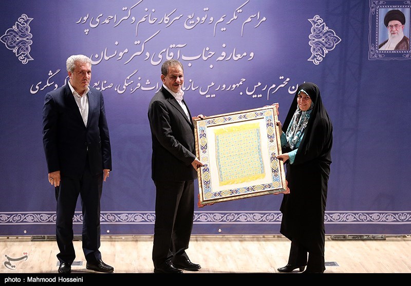 حال در مراسم تودیع زهرا احمدی پور - رئیس پیشین سازمان میراث فرهنگی، صنایع دستی و گردشگری از طرف اسحاق جهانگیری - معاون اول رئیس جمهوری؛ یک تابلو پارچه زربفت هدیه داده شد. هدیه ای که رضا رشیدپور - مجری این مراسم نیز با جمله «هدیه ای با ارزش» توصیف کرد.