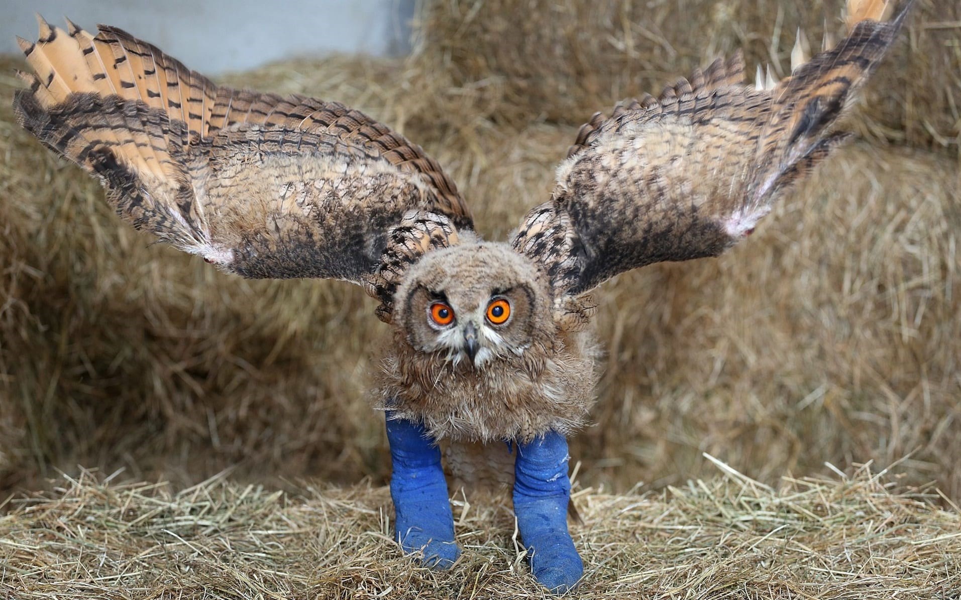 بر اساس گزارش تلگراف، این جوجه جغد نمیتواند تعادل و وزن خود را حفظ کند و به دلیل اینکه نمیتواند با خیال راحت فرود بیاید نمیتواند پرواز کند.