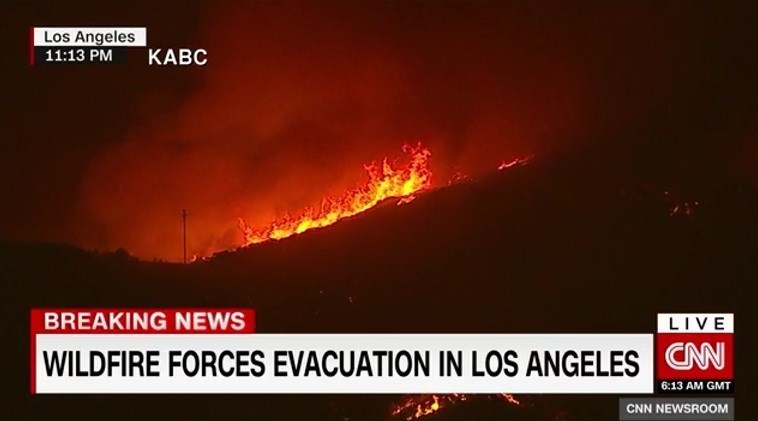 طبق این گزارش، این آتشسوزی که بهدلیل وزش باد بر ابعاد آن افزوده شده، در دامنه کوههای «ورداگو»(Verdugo) لسآنجلس روی داده است.