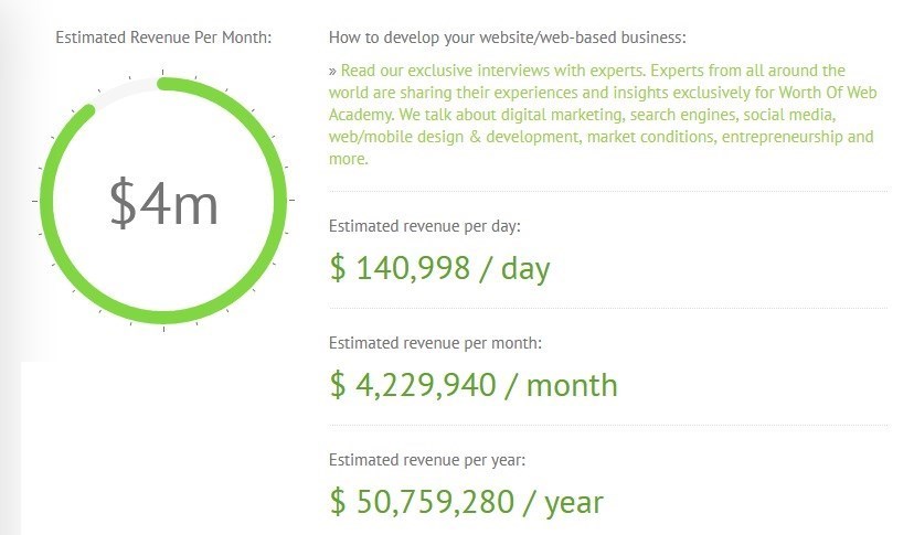 Worth Of Web Academy (آکادمی ارزش وب) همچنین درآمدهای روزانه، ماهانه و سالانه دامنه t.me را به شرح زیر اعلام کرده است: