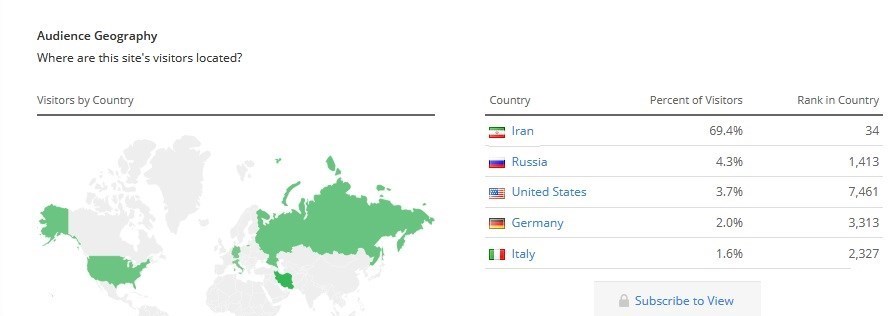 بر اساس آمار الکسا telegram.org بیشترین بازدید خود را در حدود 33 درصد ترافیک از ایران گرفته است و روسیه با 7٪ از ترافیک در رتبه دوم از حیث بازدید می باشد، پس می توان با استناد به تخمین ارزشهایی که سایت Worth Of Web Academy (آکادمی ارزش وب ) برای telegram.org اعلام کرده و با توجه به 33 درصد ترافیک تلگرام در ایران ارزشی را که ایران برای این دامنه ایجاد کرده است حدود 250 میلیون دلار معادل 1000 میلیارد تومان برآورد کرد.