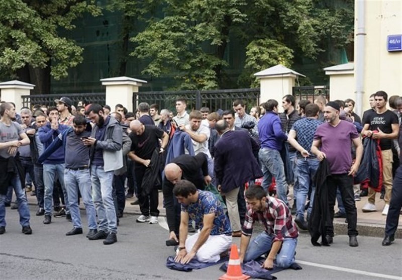 اعتراض مسلمانان روسیه در مقابل سفارت میانمار در مسکو +تصاویر