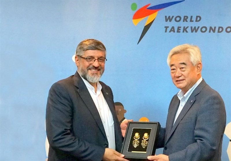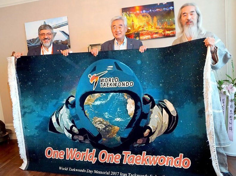 رئیس فدراسیون تکواندوی کشورمان در حاشیه مراسم روز جهانی تکواندو با دکتر چو، رئیس فدراسیون جهانی تکواندو دیدار و هدیه ویژه فدراسیون تکواندوی کشورمان را که بهمناسبت همین روز تهیه شده بود به رییس فدراسیون جهانی تکواندو اهدا کرد.